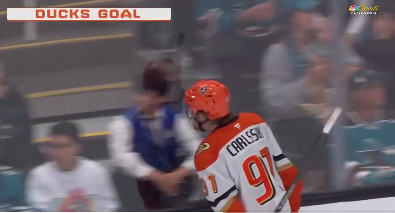 Carlsson finished the night with 3 points, including an assist on the game tying goal, and the overtime game winning goal, but it’s how he did it that’s noteworthy.